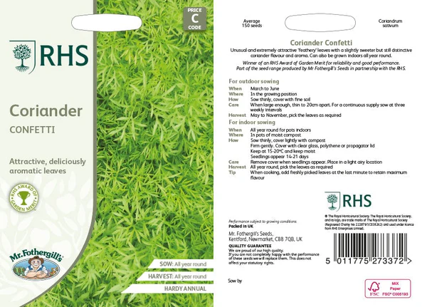 RHS Coriander Confetti Seeds